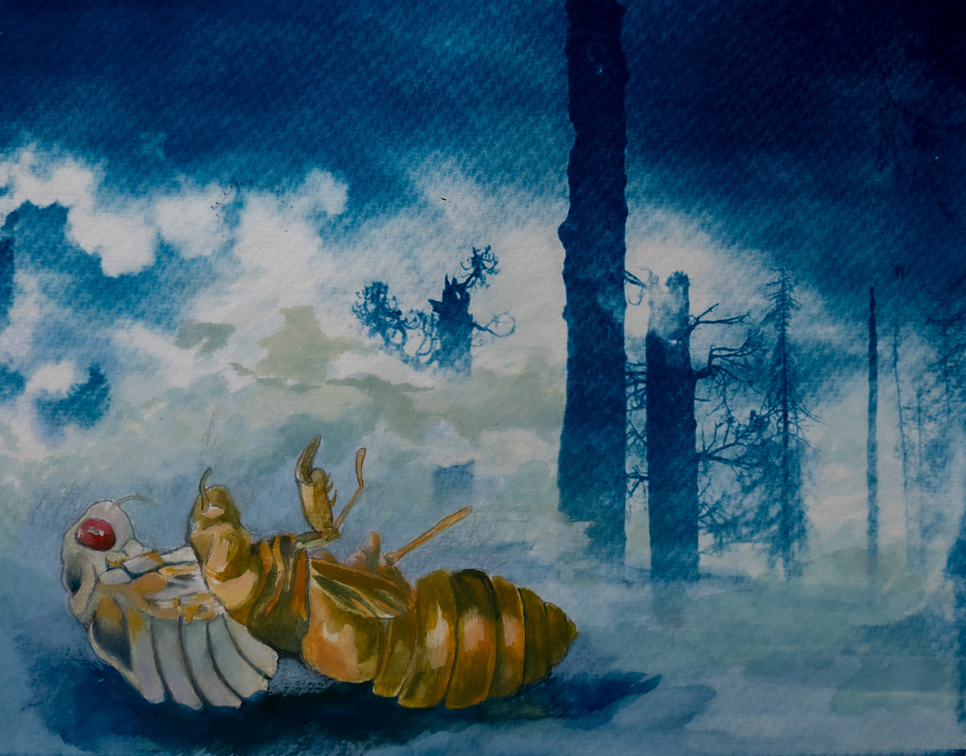 Cicada, 2023, Gouache on Cyanotype