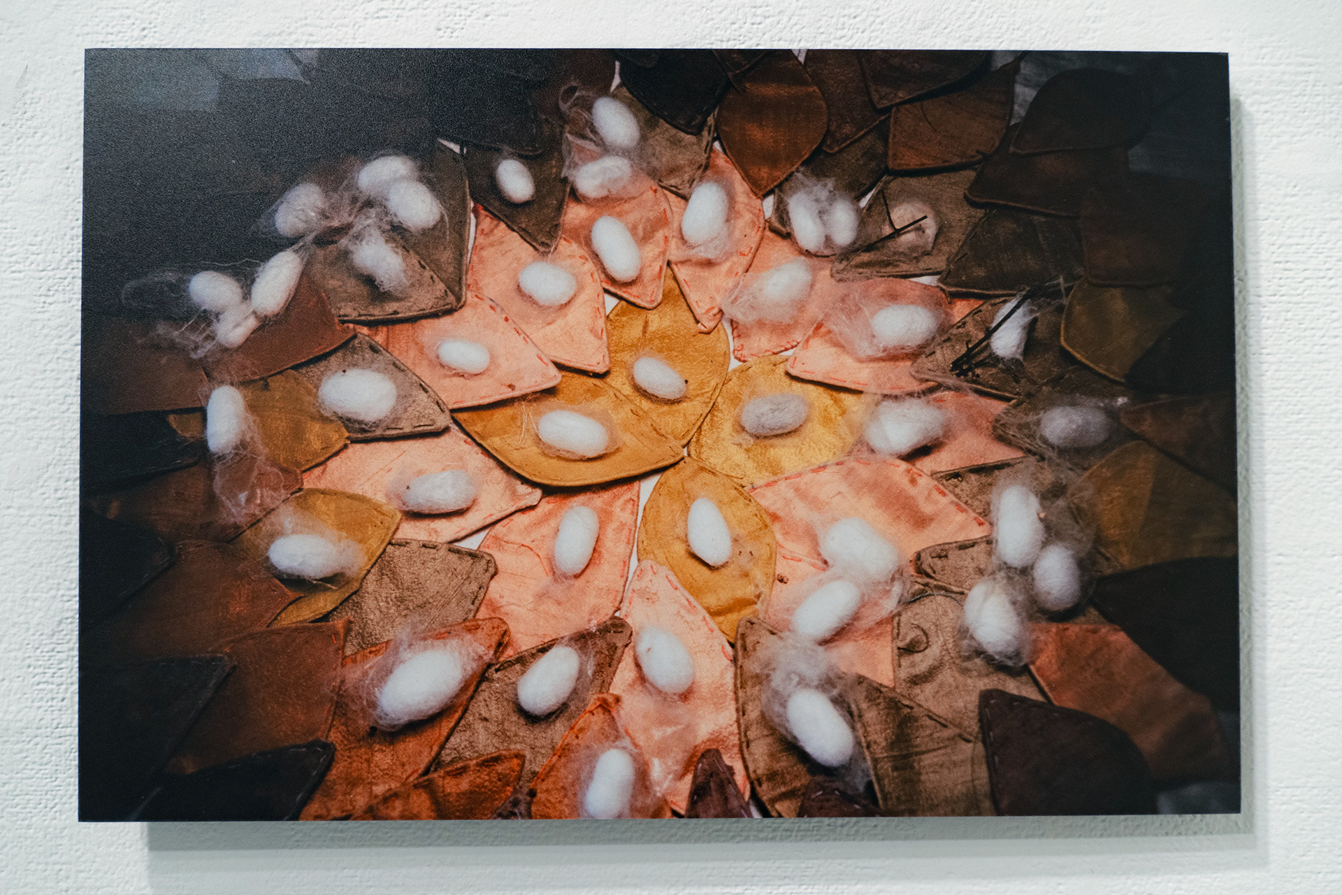 Moth Dreams, 2021, Silk Moth cocoons and natural dyed silk