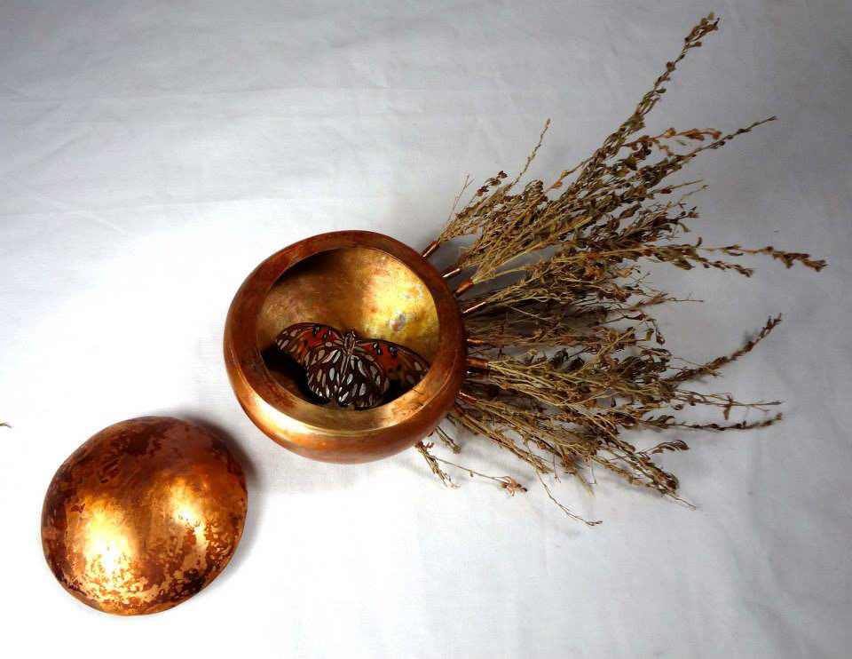 Sentiment for Evanescence, 2014, Copper, Organic Material, Fritillary Butterfly