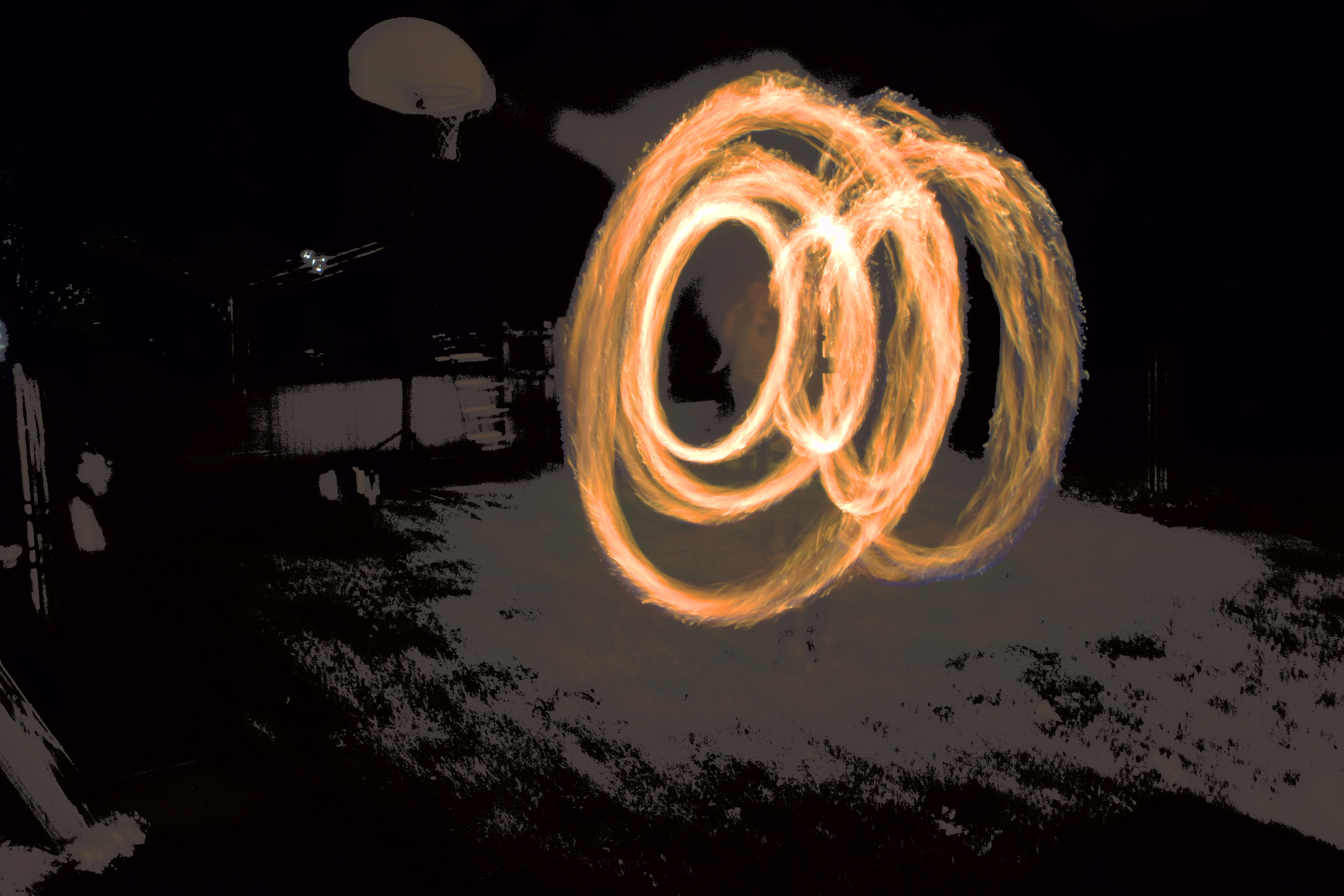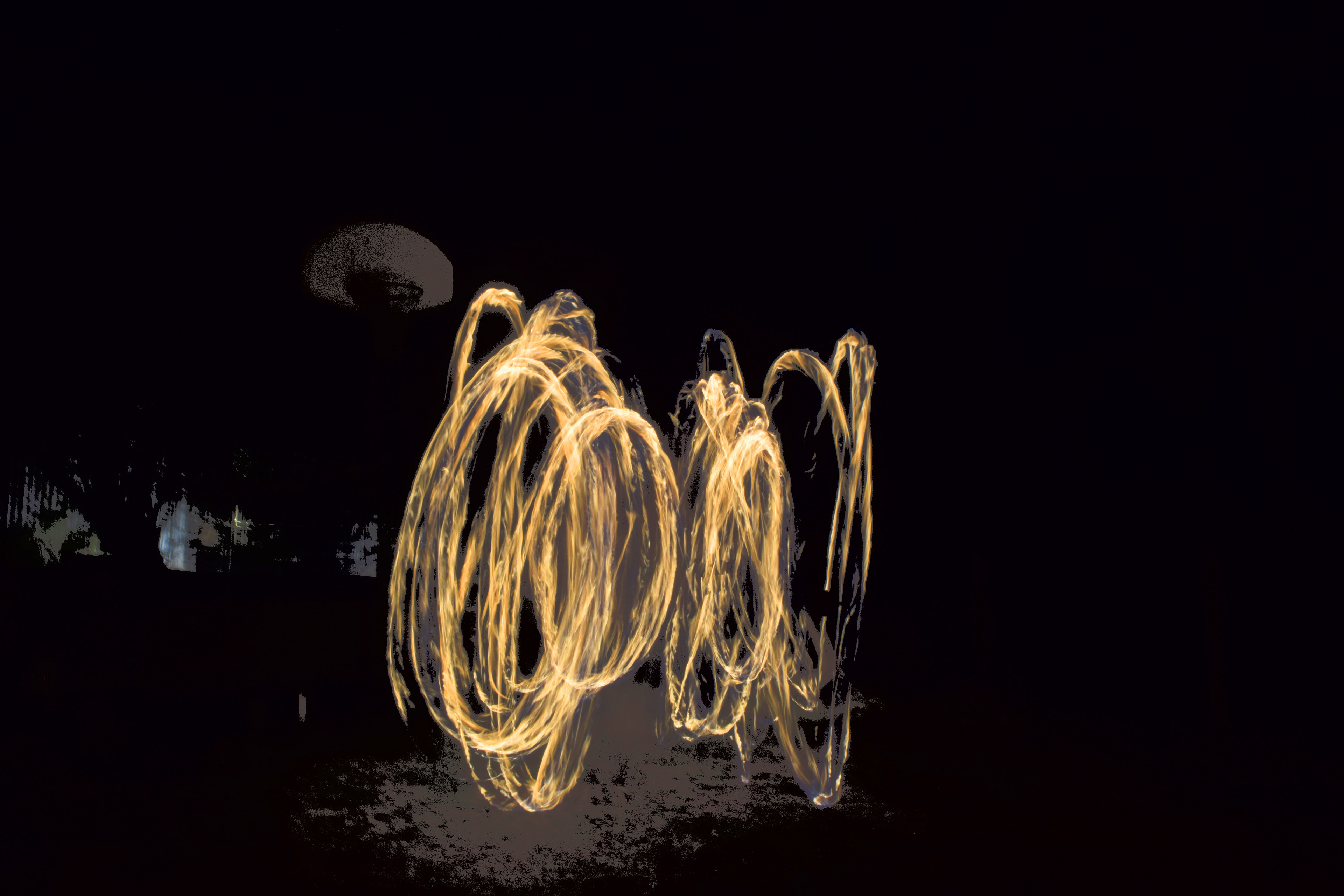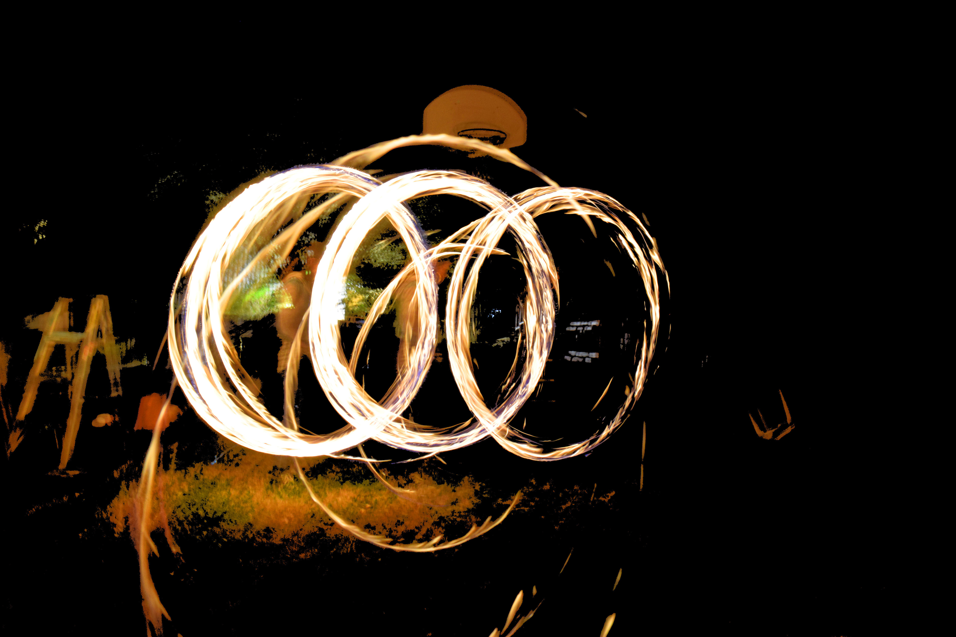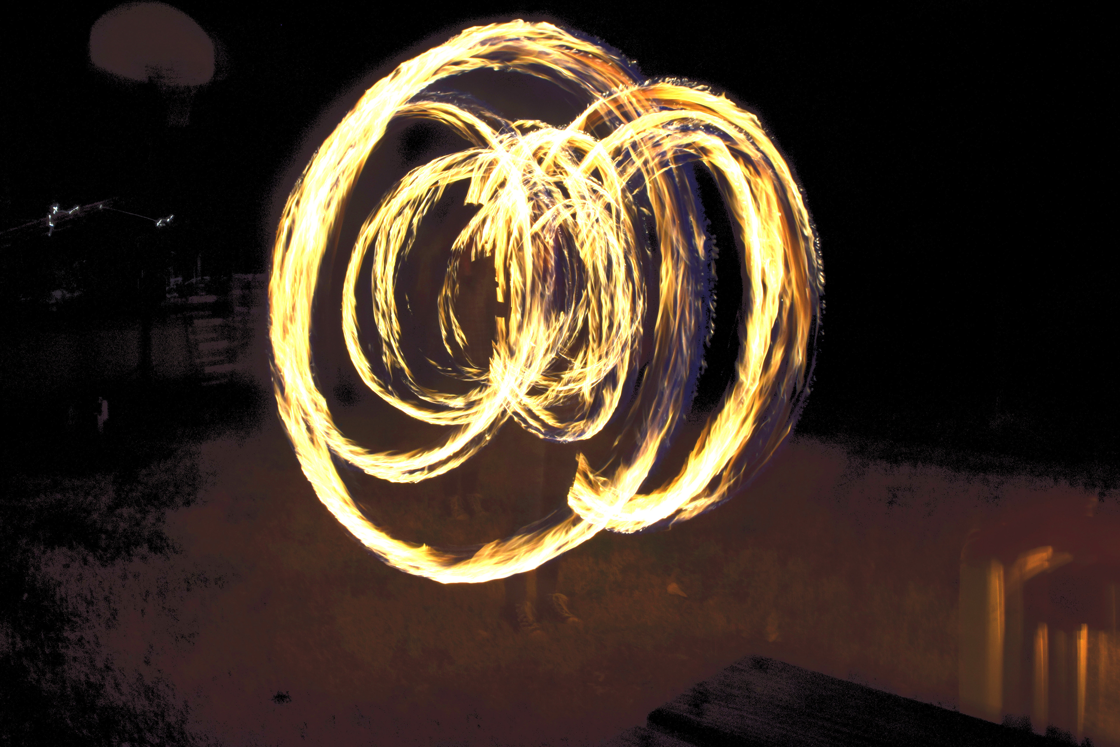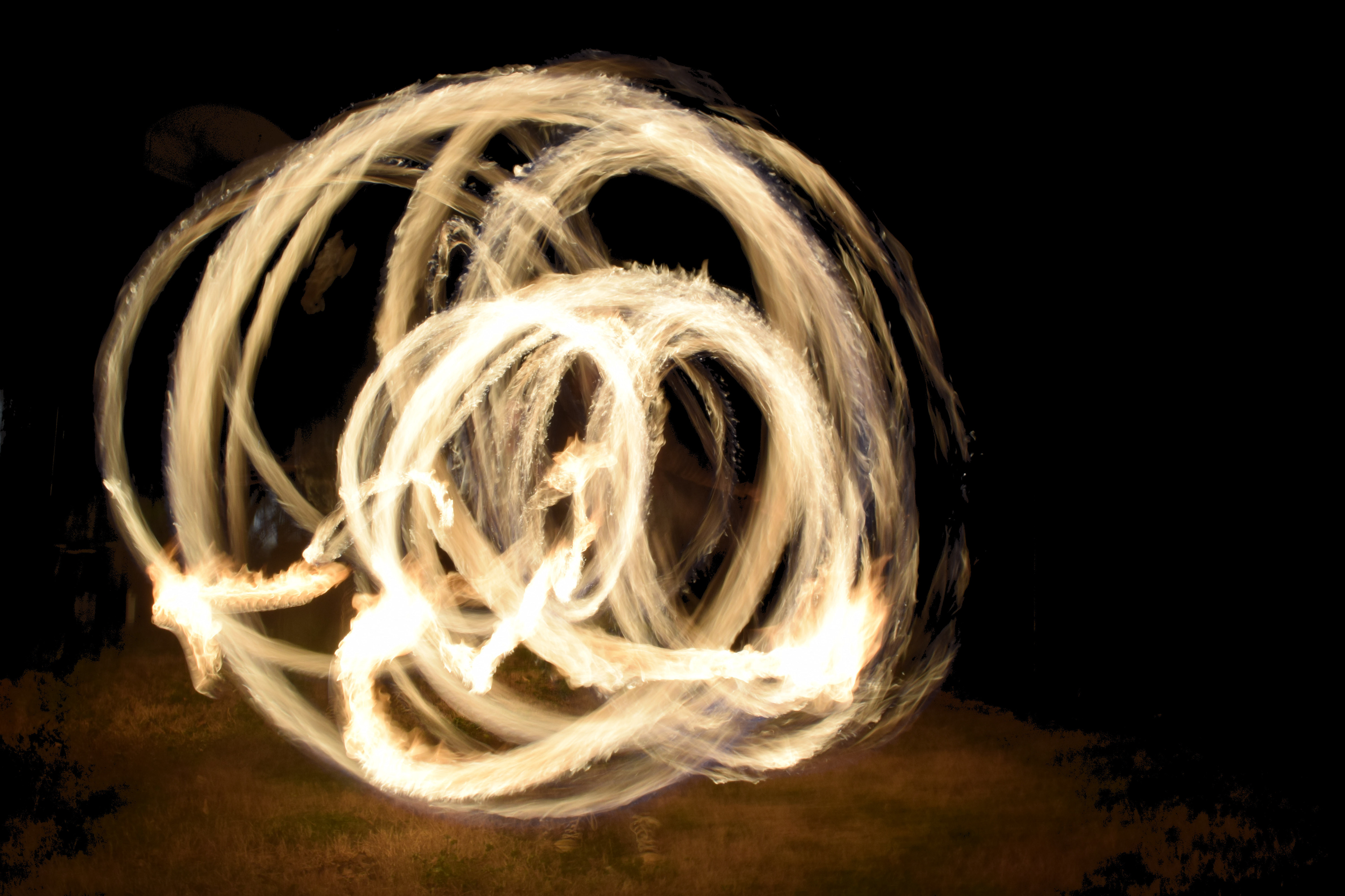 These photographs use lightning, fire poi, and the moon to create light effects.