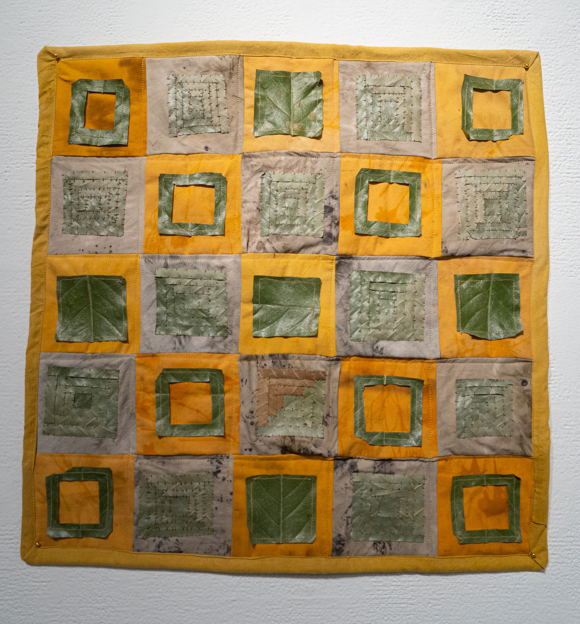Marigold Quilt, 2021, Cotton Dyed with Natural Materials, Thread, Batting, Magnolia Leaves